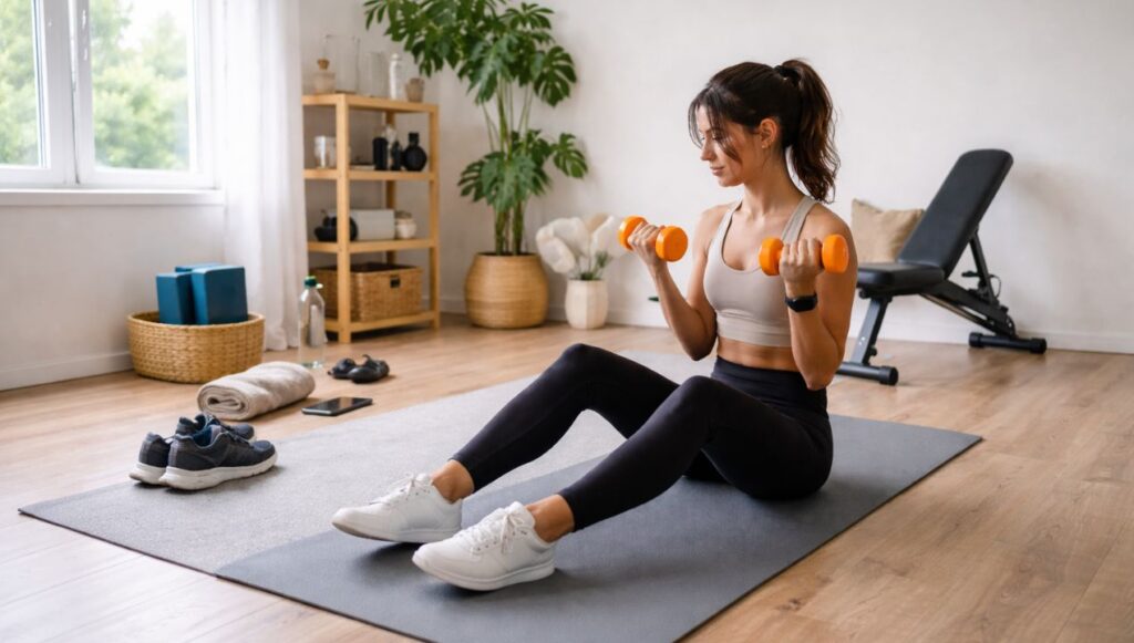 Met 2 x 3 kg kun je een volledige full-body workout doen. Denk aan squats met dumbbells langs je lichaam, lunges, shoulder presses, lateral raises, bicep curls, tricep kickbacks en zelfs lichte chest presses op de grond.