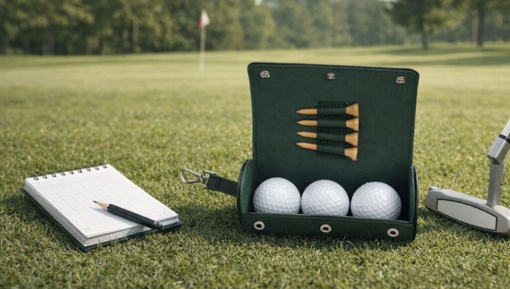 Als je net begint met golf, weet je vaak nog niet precies wat je allemaal nodig hebt. Tees, ballen, markers, soms een tool om je bal te repareren. Dit etui helpt je daar ongemerkt bij. Alles heeft een vaste plek, waardoor je automatisch leert wat je bij je hoort te hebben.