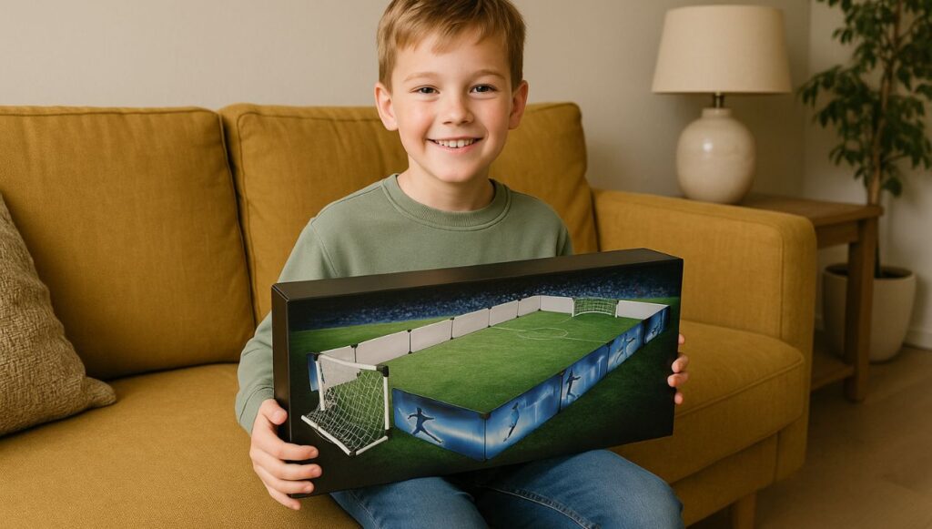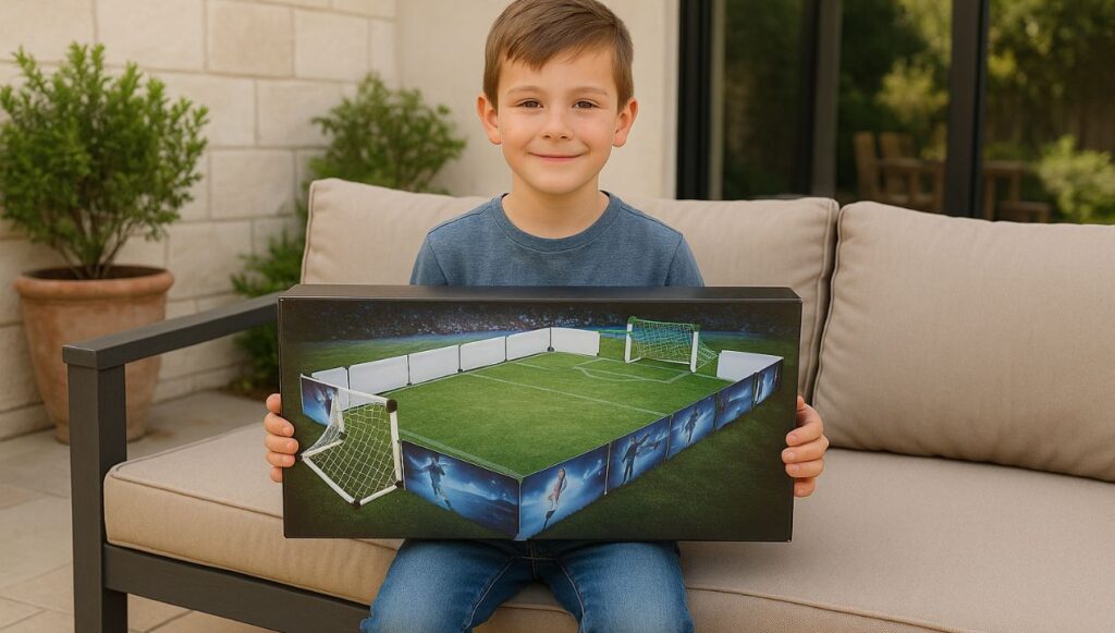Wat ik persoonlijk heel erg waardeerde, is dat het veld geleverd wordt met een voetbal en een pomp. Je hebt meteen alles in huis om te beginnen. Geen gedoe met het zoeken naar een bal die óf te zacht óf te klein is. Je haalt alles uit de doos, zet het op en je bent klaar. Het klinkt simpel, maar het maakt echt verschil.
