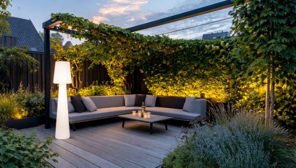 Wanneer je de lamp voor het eerst ziet, valt meteen op dat het ontwerp vrij minimalistisch is. Dat is eigenlijk een slimme keuze. In plaats van een ingewikkeld design dat alleen bij bepaalde tuinstijlen past, heeft deze lamp een neutrale uitstraling. Daardoor past hij net zo goed naast een loungeset als op een balkon of langs een tuinpad.