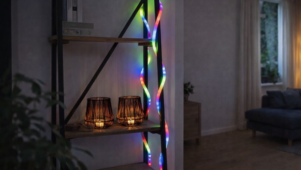In de woonkamer zorgt het voor sfeervolle achtergrondverlichting achter een tv of langs een muur. In de slaapkamer werkt het uitstekend als zachte indirecte verlichting.