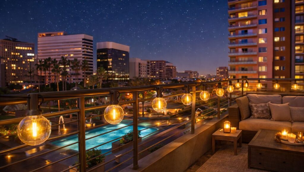 Het snoer zelf is flexibel genoeg om langs schuttingen, balkons of pergola’s te leiden. Veel mensen kiezen ervoor om de lampen in een lichte boog te hangen. Dat ziet er vaak het gezelligst uit en voorkomt dat de kabel te strak staat.