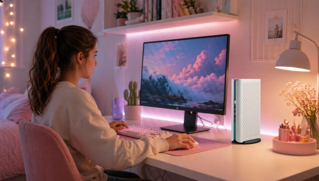 Software zoals Adobe Premiere Pro en Blender profiteert zichtbaar van de GPU-acceleratie. Renderingtijden worden verkort en real time previews verlopen vloeiender. Dit maakt de pc zeer geschikt voor creatieve professionals die een compacte werkplek zoeken zonder in te leveren op snelheid.