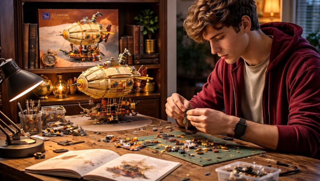 Als je iets hebt met steampunk, tandwielen, luchtballonnen en dat typische Victoriaanse sci-fi sfeertje, dan trekt de Pantasy Steampunk Airship 85021 meteen je aandacht. Dat was bij mij in ieder geval zo. Je ziet zo’n doos en je weet eigenlijk al: dit is geen standaard bouwset. Dit is er eentje waar je even voor gaat zitten.