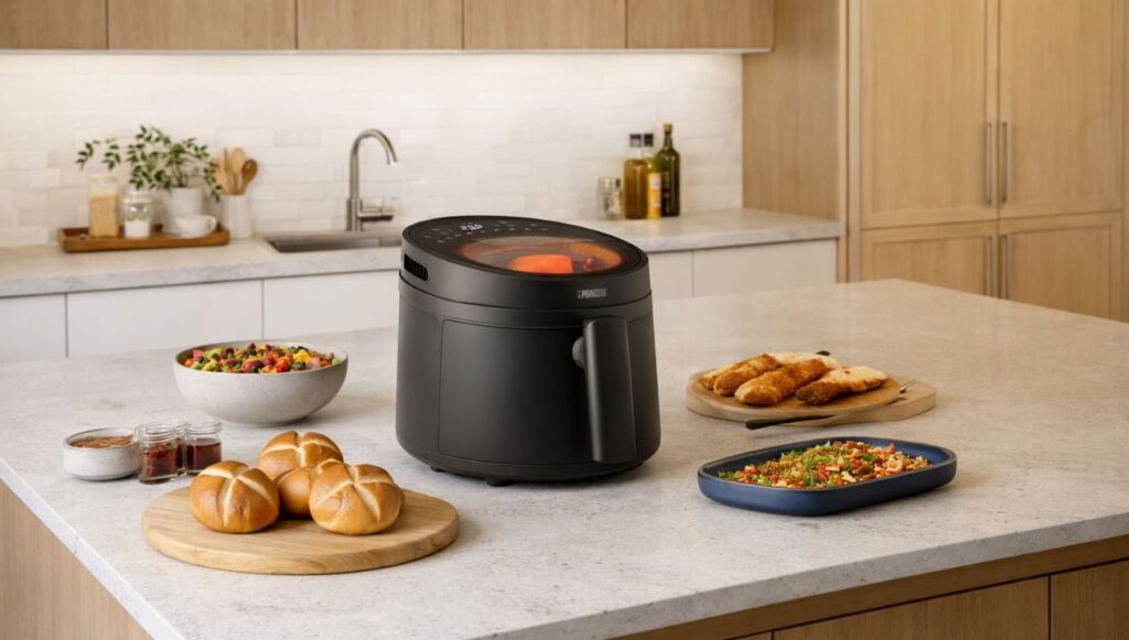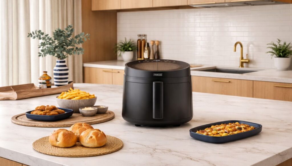 Airfryers zijn inmiddels bijna standaard in veel keukens. Waar je een paar jaar geleden nog twijfelde of zo’n apparaat echt nuttig was, zie je nu dat steeds meer mensen hun oven of frituurpan links laten liggen. De Princess Cyclonic Vision Airfryer van 5 liter is zo’n model dat meteen opvalt door een klein maar slim detail: een kijkvenster. Dat lijkt simpel, maar in dagelijks gebruik blijkt het verrassend handig.