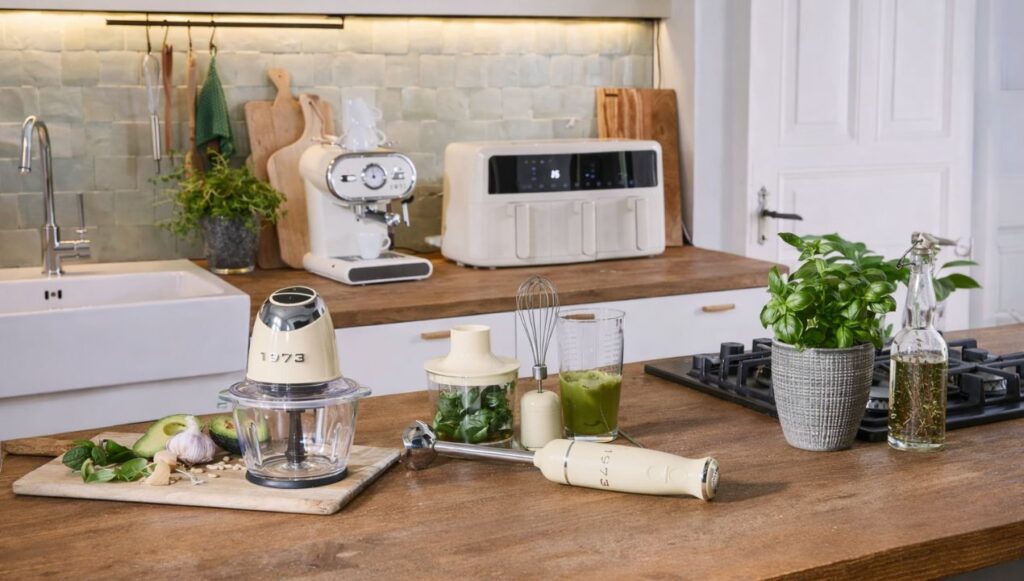 Wat deze staafmixerset onderscheidt van een losse staafmixer, is de veelzijdigheid. Je krijgt niet alleen de mixervoet, maar ook extra accessoires die je daadwerkelijk gaat gebruiken. De hakmolen is daar een goed voorbeeld van. Uien, knoflook, noten of kruiden hakken gaat snel en zonder tranen of geplette vingers. Het resultaat is gelijkmatig, wat vooral fijn is als je van koken houdt en controle wilt over textuur.