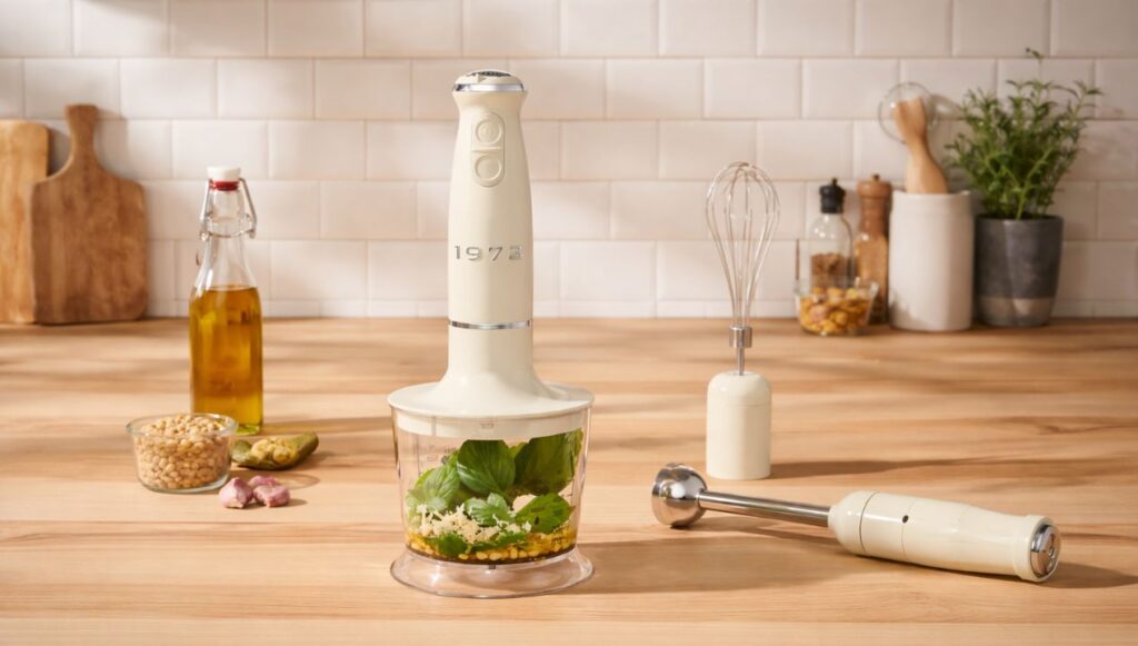600 watt klinkt op papier misschien niet spectaculair, maar in de praktijk blijkt het precies in het midden te zitten van wat je nodig hebt. Soepen pureren gaat soepel, zonder dat je het gevoel hebt dat de motor moeite moet doen. Groenten worden gelijkmatig fijn, zelfs als je niet alles eerst in kleine stukjes snijdt. Bij sauzen en smoothies merk je vooral hoe consistent het resultaat is. Geen grote stukken die ontsnappen, geen waterige structuur omdat je bang bent om langer te mixen.