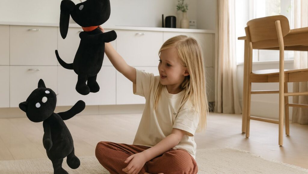 Wanneer je kijkt naar andere knuffels uit dezelfde categorie, valt op hoe speels deze zijn zonder dat het een kindergadget wordt. Veel knuffels met speciale functies voelen goedkoop aan of verliezen na verloop van tijd hun aantrekkingskracht. Hier blijft het leuke juist bestaan doordat je ze steeds anders neerzet.