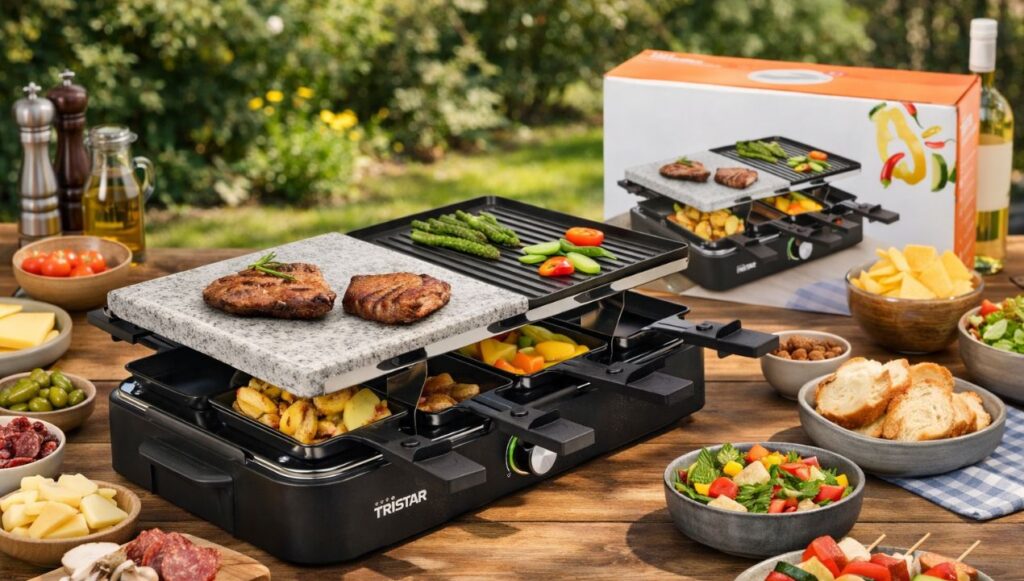 Er zijn van die avonden waarop je geen zin hebt in “iedereen een bord, iedereen een pan, iedereen een eigen timing”. Je wilt gewoon aan tafel zitten, eten maken terwijl je praat, lachen, nog een wijntje inschenken en ondertussen iets lekkers op je vork prikken. Precies daarvoor bestaat een raclette- en gourmetset. En de Tristar raclette en gourmetset met steengrill van de Action webshop is er eentje die verrassend goed aansluit op dat soort avonden.