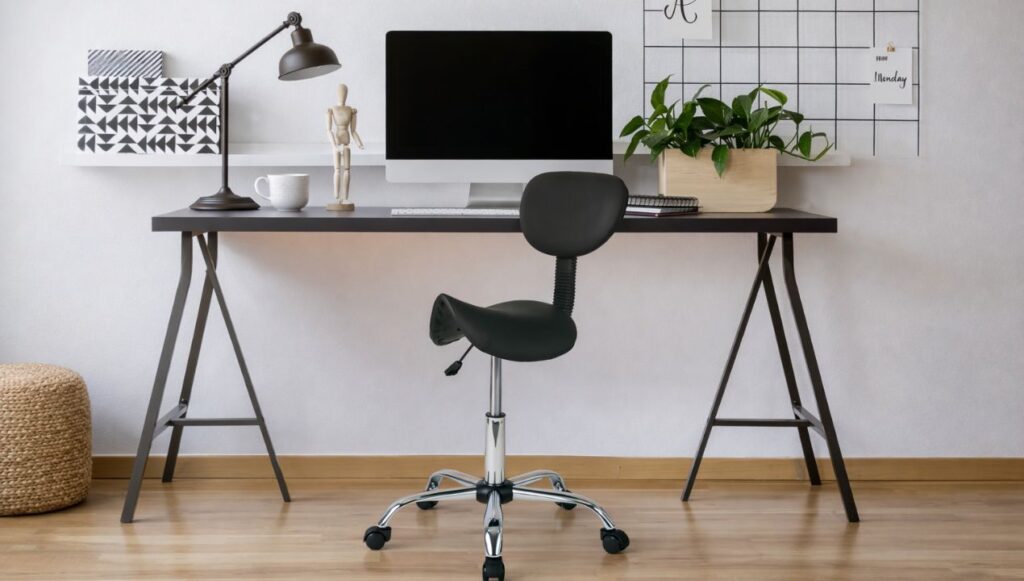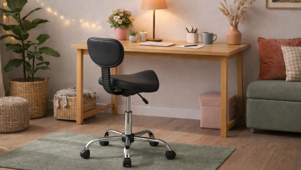Een zadelkruk klinkt misschien als iets uit een tandartspraktijk, maar geloof me: het idee erachter is simpeler dan je denkt. Het ontwerp dwingt je in een actievere zithouding, waardoor je minder inzakt. En ja, dat voel je.